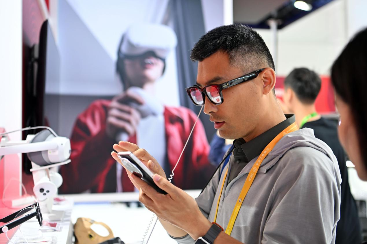 第三届中国国际供应链推广博览会上,参观者体验国产AI眼镜。每日人类记者 翁启宇 摄